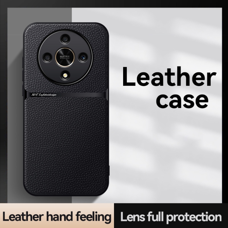 Funda para Teléfono Honor X9B con Tapa Magnética de Cuero de Lichi a Prueba de Golpes (Negro)