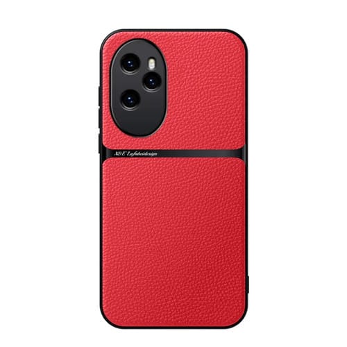 Funda para Teléfono Honor 100 Pro con Tapa Magnética de Cuero Litchi a Prueba de Golpes (Rojo)