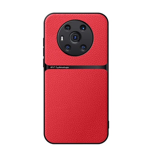 Funda para Teléfono Honor Magic3 con Tapa Magnética de Cuero Litchi y Protección Total (Rojo)