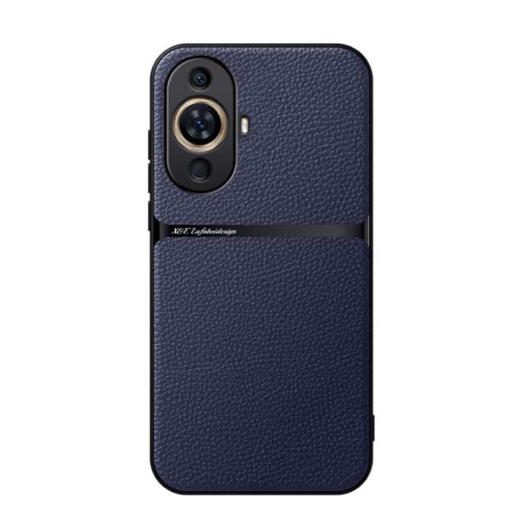 Funda para Teléfono Huawei Nova 11/Nova 12S con Tapa Magnética Piel de Lichi a Prueba de Golpes (Azul Marino)