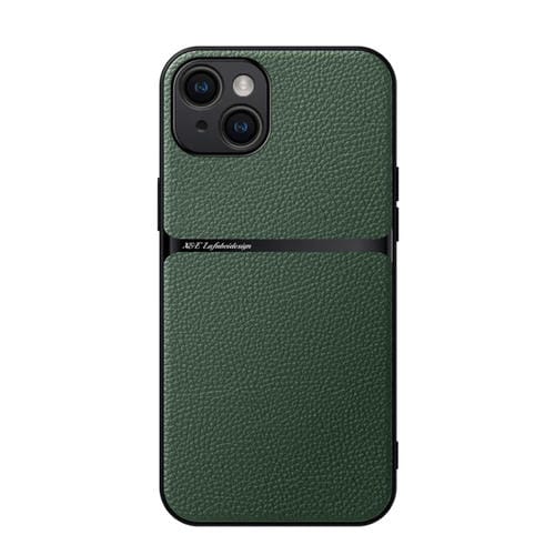 Funda para Teléfono iPhone 14 Plus Piel de Lichi Tapa Magnética a Prueba de Golpes (Verde)
