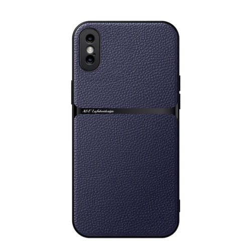 Funda para Teléfono iPhone X/Xs Piel de Lichi Tapa Magnética a Prueba de Golpes (Azul Marino)
