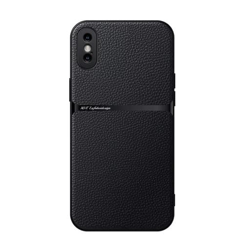 Funda para Teléfono iPhone X/Xs Piel de Lichi Tapa Magnética a Prueba de Golpes (Negra)
