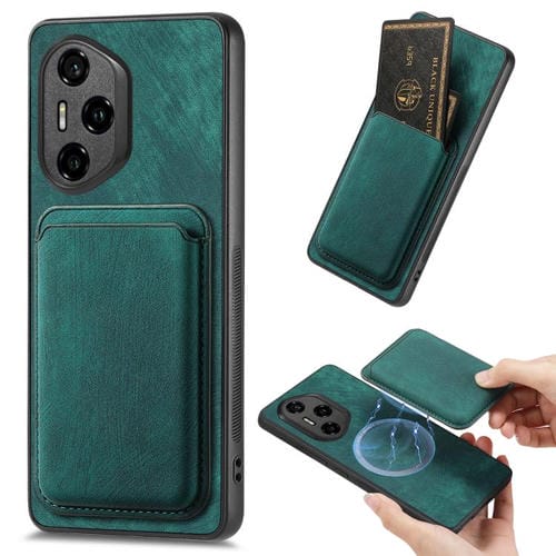 Funda para Teléfono Honor 300 Pro con Tarjetero Cuero Retro y Cierre Magnético (Verde)