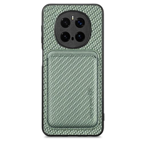 Funda para Teléfono con Tarjetero Magsafe de Cuero Fibra de Carbono para Honor Magic 7 Pro (Verde)