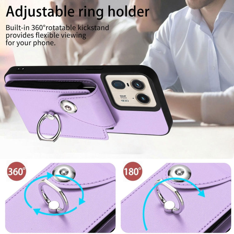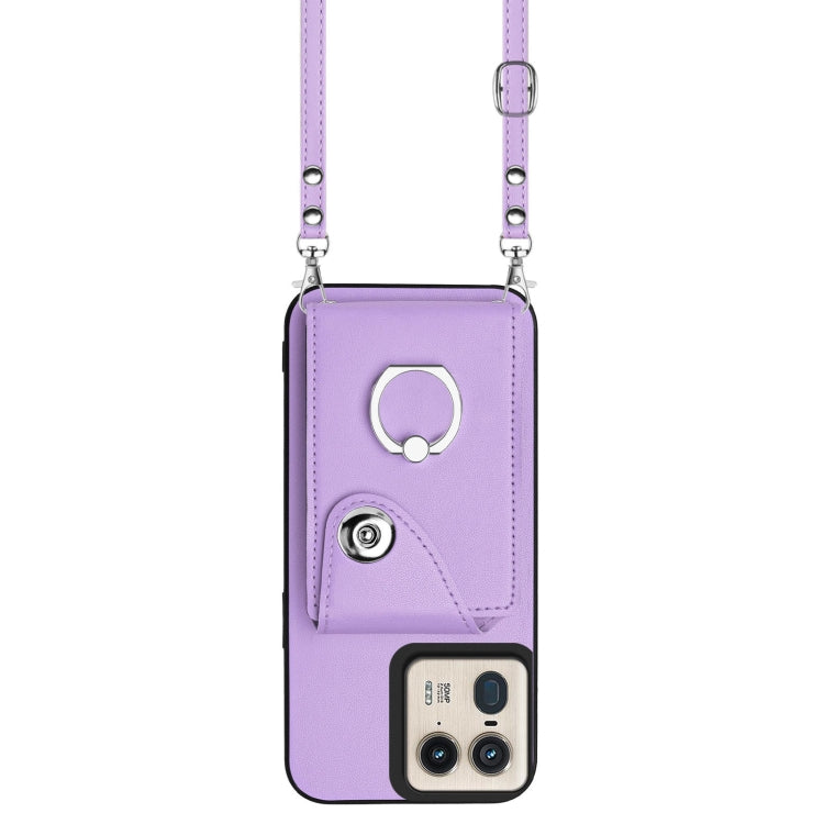 Funda para Teléfono Motorola Moto X50 Ultra con Tarjetero, Anilla y Cordón Largo (Morado)