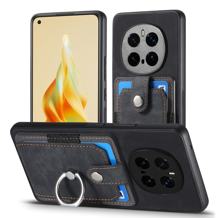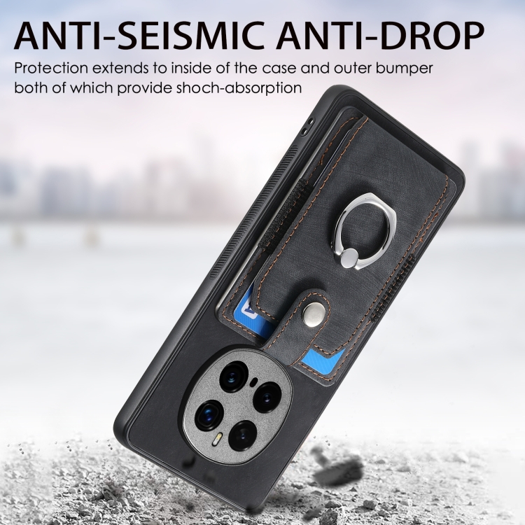 Funda para Teléfono Honor Magic7 Pro con Tarjetero y Anillo Tacto de Piel (Negra)