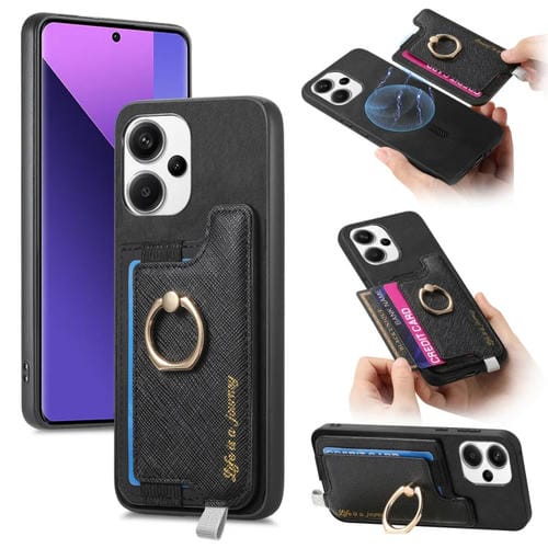 Funda para Teléfono con TaRJetero y Anillo de Cuero con Diseño Retro Magsafe Cross para Redmi Note 13 Pro+ (Negro)