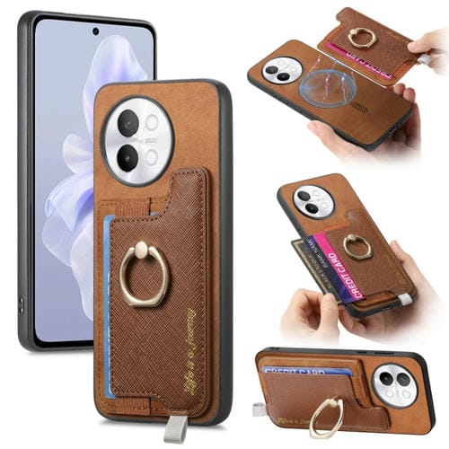 Funda para Teléfono con TaRJetero y Anillo de Cuero con Diseño Retro Magsafe Cross para Vivo S18E 5G (Marrón)