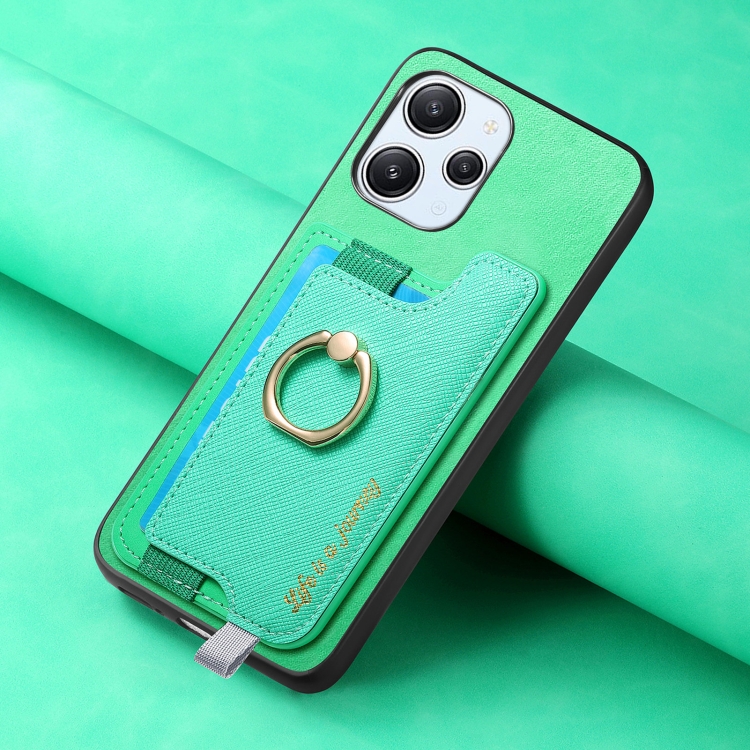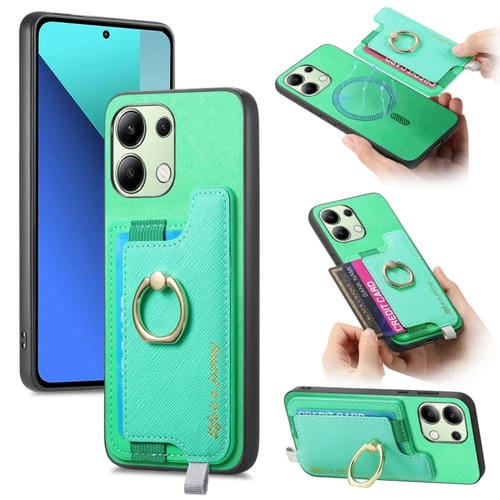 Funda para Teléfono con TaRJetero y Anillo de Cuero con Diseño Retro Magsafe para Xiaomi Redmi Note 13 4G (Verde)