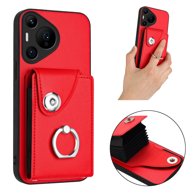 Funda para Teléfono Huawei Pura 70 Pro y 70 Pro+ con Tarjetero y Anillo (Roja)