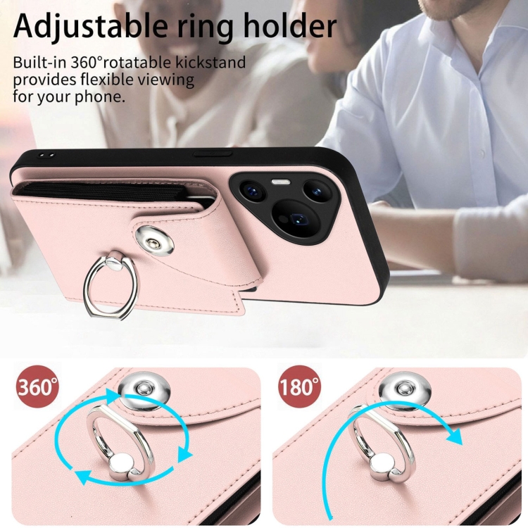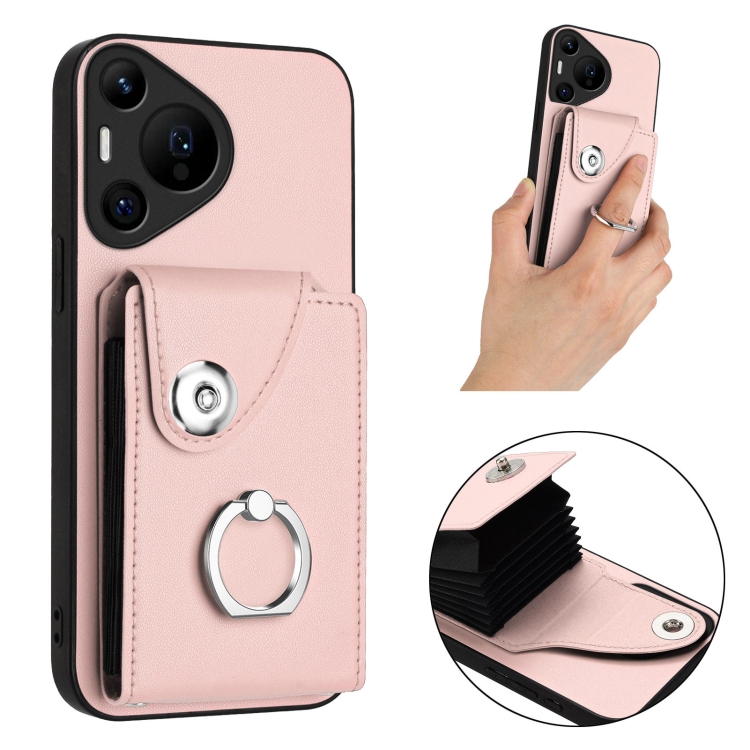 Funda para Teléfono Huawei Pura 70 Pro/70 Pro+ con Tarjetero y Anillo (Rosa)