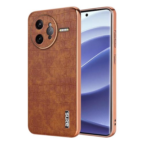 Funda para Teléfono con Textura de Cocodrilo y Marco Galvanizado Azns para Redmi K80 Pro (Marrón)