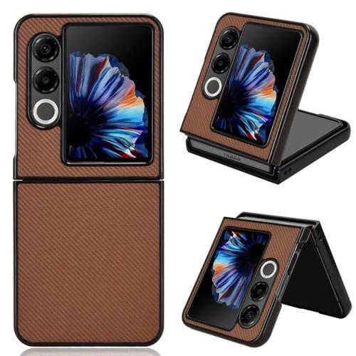 Funda para Teléfono ZTE Nubia Flip2 Textura Fibra de Carbono y Cuero Sintético (Marrón)