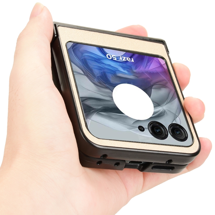 Funda para Teléfono Motorola Razr 50 con Textura de Piel de Arena (Dorada)