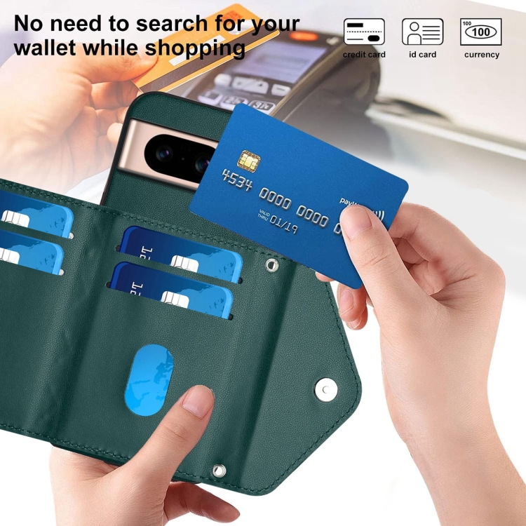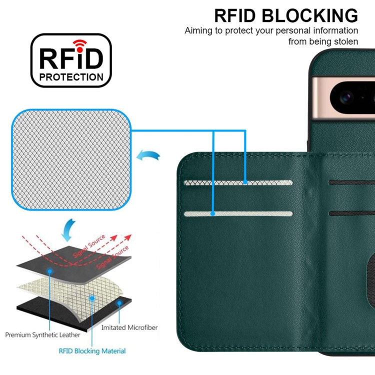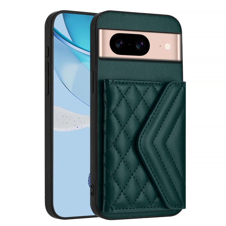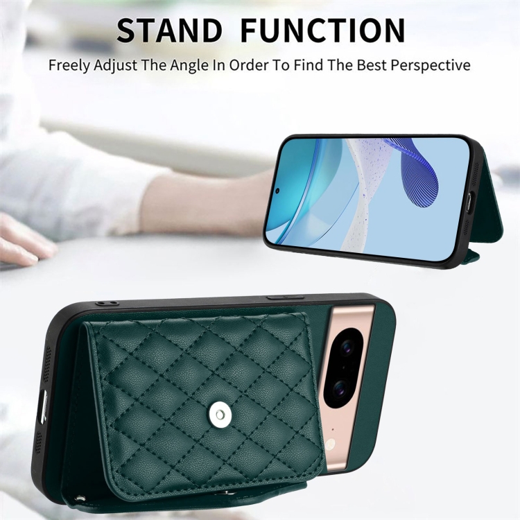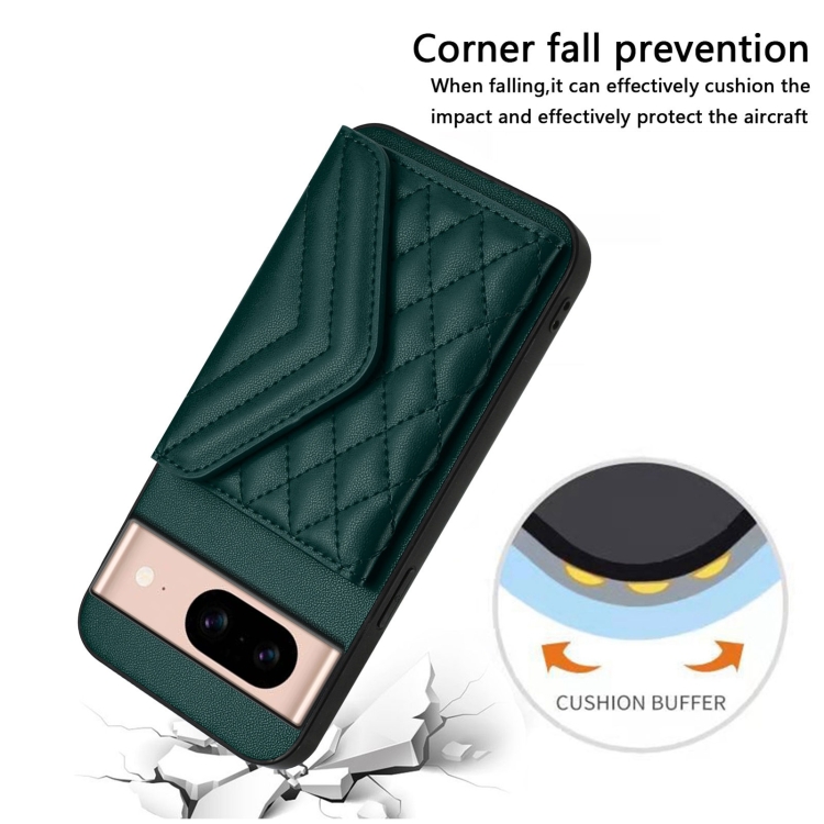 Funda para Teléfono Google Pixel 8A con Textura Rombal y Tarjetero RFID con Cordón Largo (Verde)