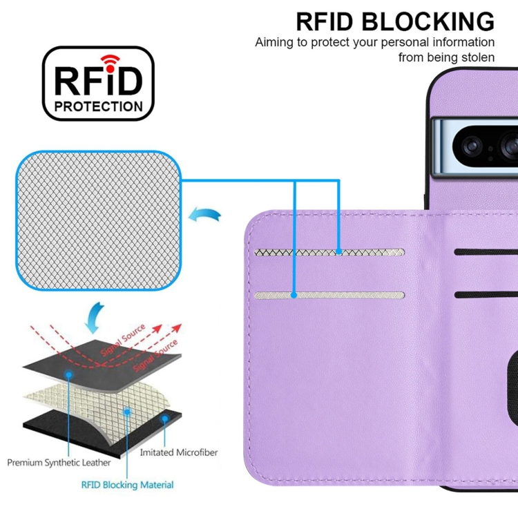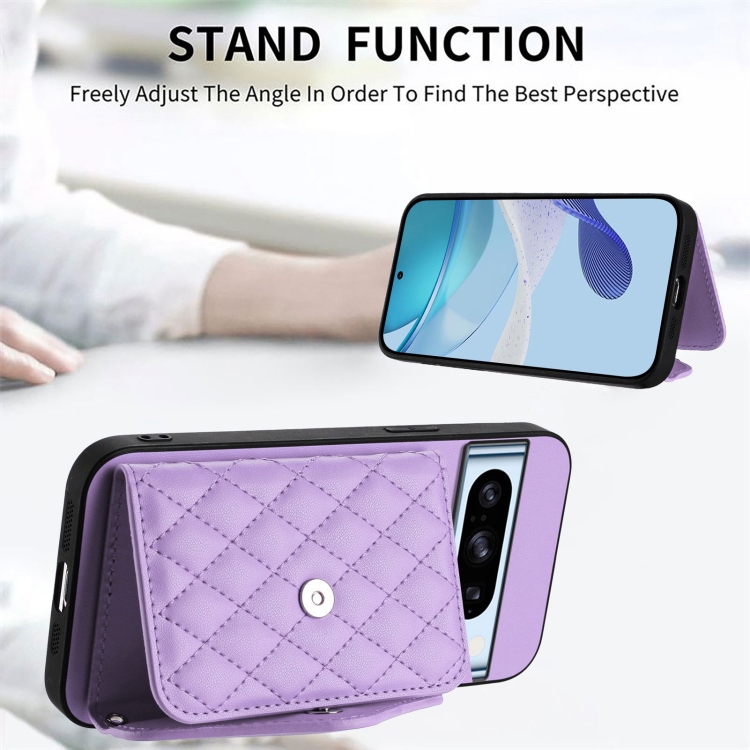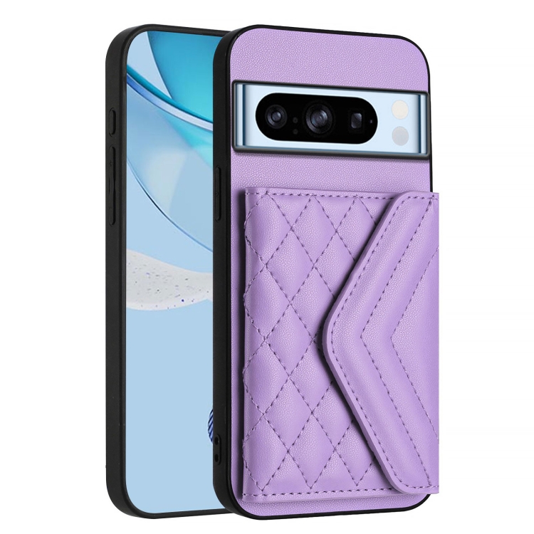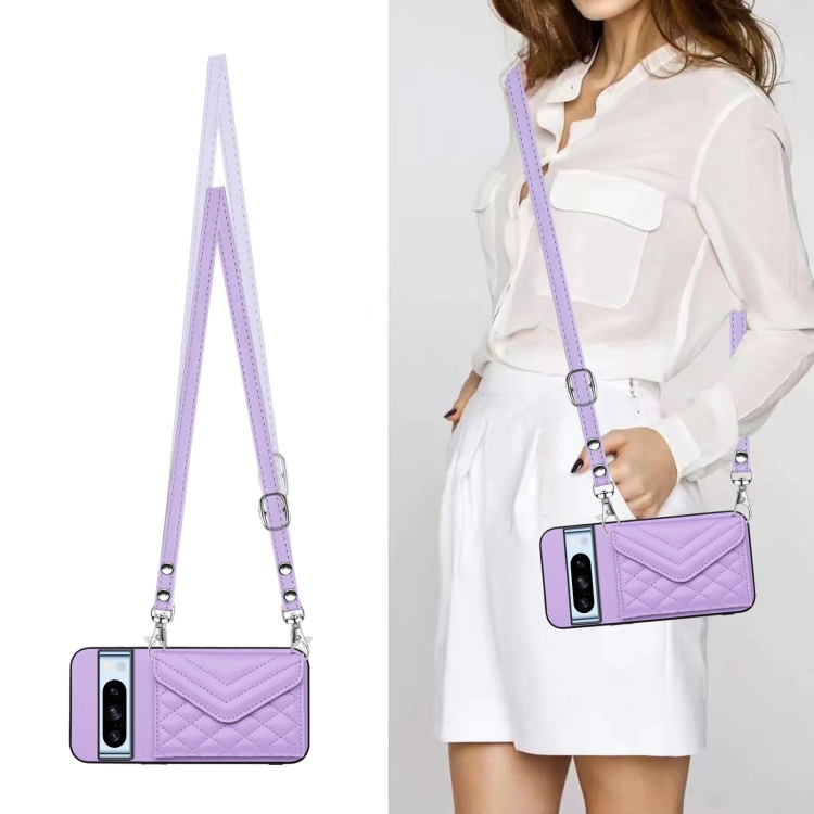 Funda para Teléfono Google Pixel 8 Pro con Textura Rómbica y Tarjetero RFID con Cordón Largo (Morado Claro)