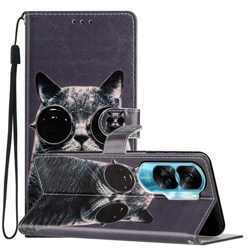 Funda para Teléfono Honor 90 Lite Cuero con Dibujo Gato con Gafas de Sol
