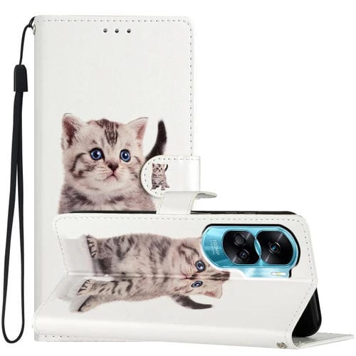Funda para Teléfono Honor 90 Lite Cuero Dibujo Coloreado Pequeño Gato Atigrado