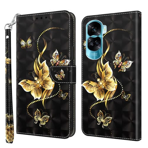 Funda para Teléfono Cuero Pintado 3D Honor 90 Lite (Mariposa Golondrina Dorada)
