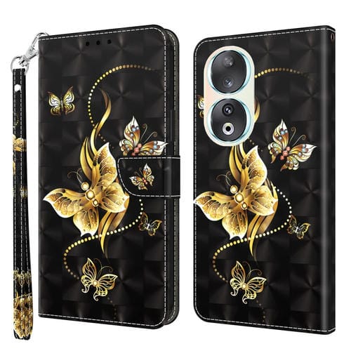 Funda para Teléfono Honor 90 de Cuero Pintado en 3D (Mariposa Golondrina Dorada)