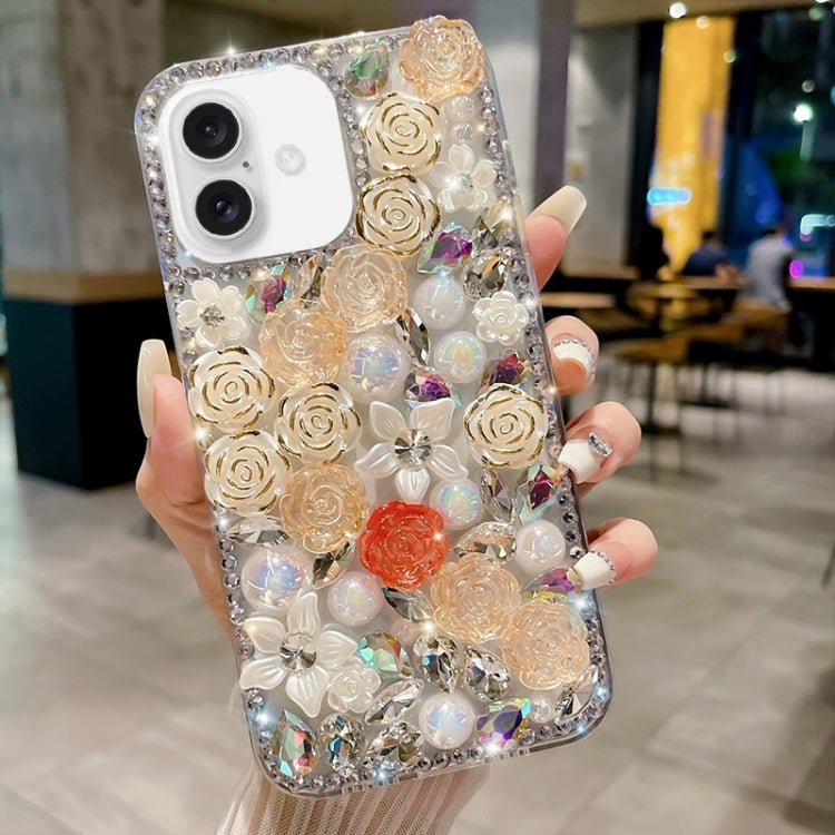 Funda para Teléfono PC con Diamantes Perlados Diseño de Rosas para iPhone 16 (Albaricoque)