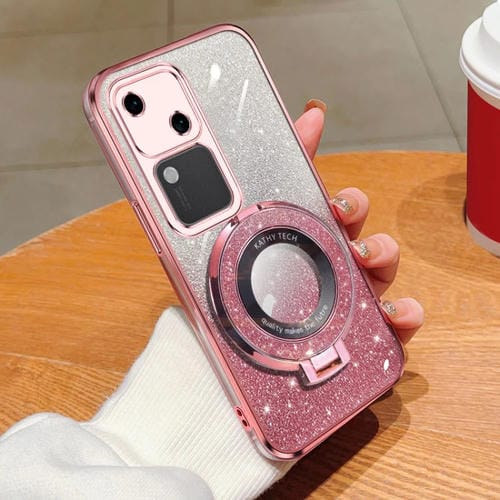 Funda para Teléfono de TPU con Soporte Redondo y Purpurina Degradada Plateada para Vivo S18 (Rosa)