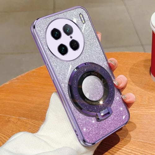 Funda para Teléfono de TPU con Soporte Redondo y Purpurina Degradada Plateada para Vivo X90 Pro (Morado)