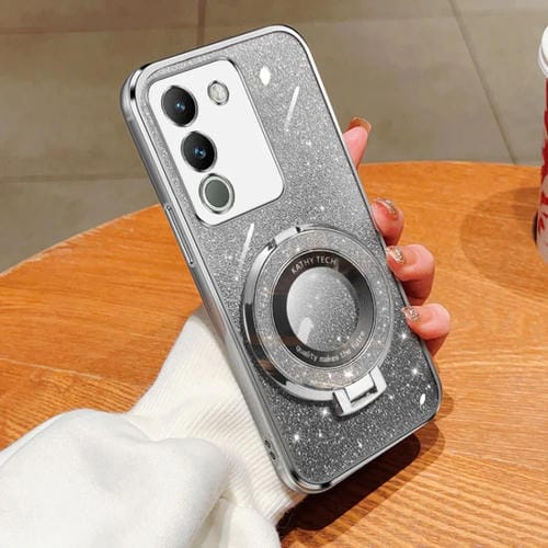 Funda para Teléfono de TPU con Soporte Redondo y Purpurina Degradada Plateada para Vivo Y200 Global/V29E (Plateada)