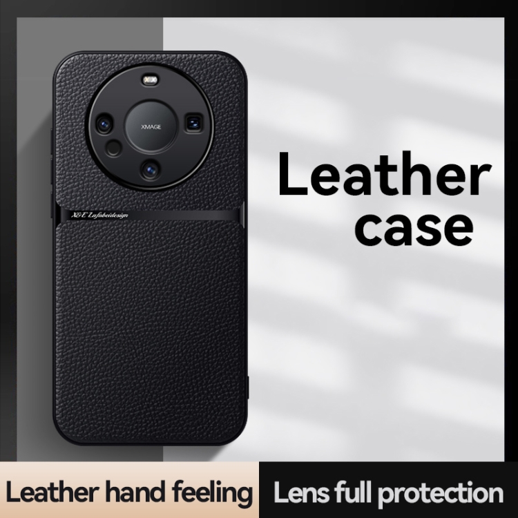 Funda para Teléfono Huawei Mate 60 Piel de Lichi Cobertura Total Magnética Azul