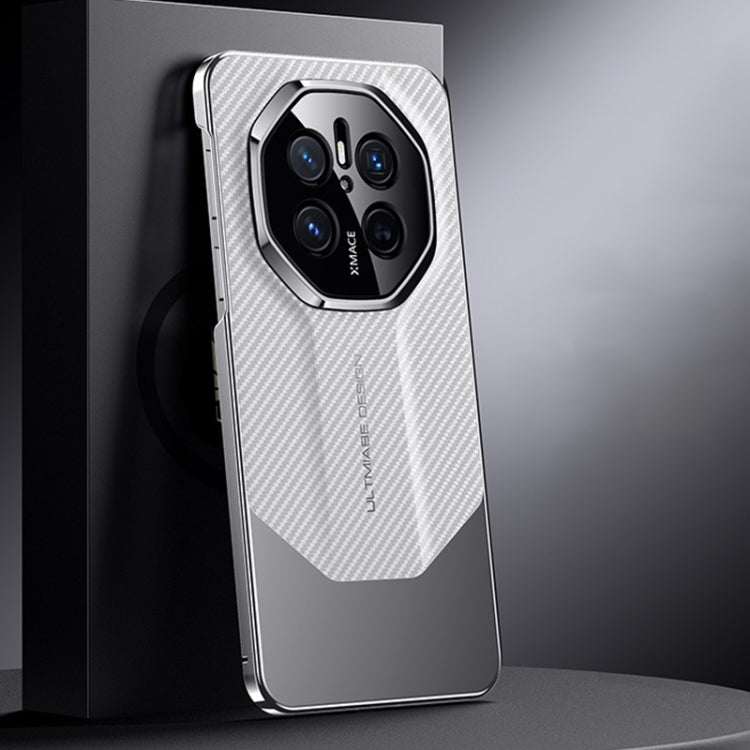 Funda para Teléfono Huawei Mate 70 Platinum con Diseño de Imitación de Fibra de Carbono (Blanca)