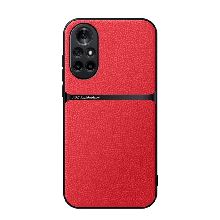 Funda para Teléfono Huawei Nova 8 Pro Piel de Lichi Cobertura Total Magnética (Roja)