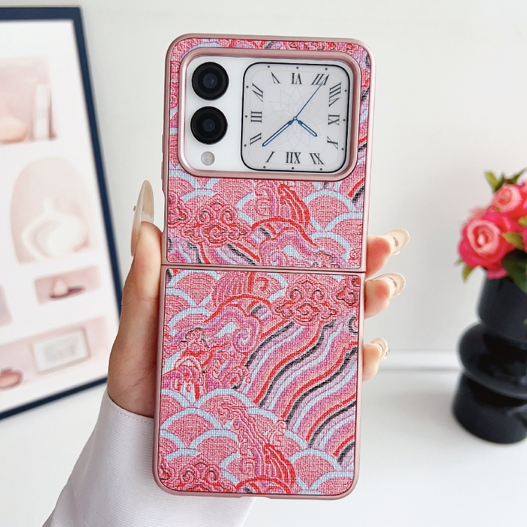 Funda para Teléfono Huawei Nova Flip Bordado Nubes Cobertura Total (Roja)