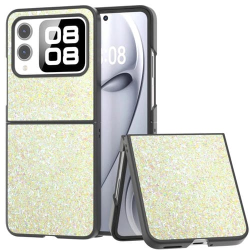 • 1x Funda para Teléfono Huawei Nova Flip con Marco Negro y Purpurina de Colores (Dorada)