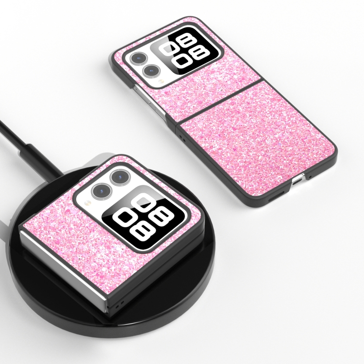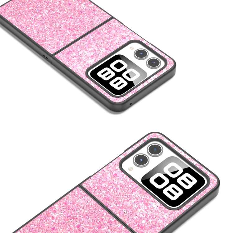 Funda para Teléfono Huawei Nova Flip con Marco Negro y Purpurina (Púrpura y Rosa)