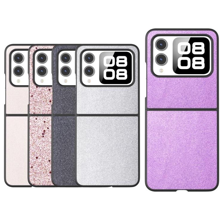 Funda para Teléfono Huawei Nova Flip con Purpurina y Cobertura Total de PU + PC (Plateada)