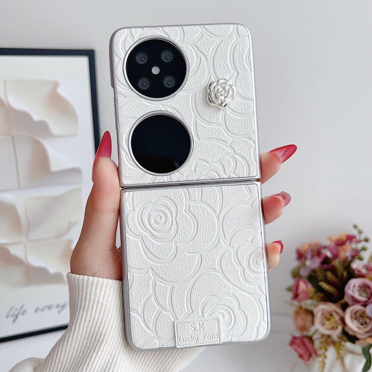 Funda para Teléfono Huawei P50 Pocket Diseño Cuadros 3D Camelia (Blanca)