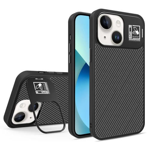 Funda para Teléfono Magsafe Fibra de Carbono Soporte Plegable iPhone 13 (Negra)