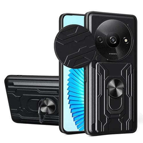 Funda para Teléfono Xiaomi Redmi A3 con Ranura para Tarjetas y TPU + PC Deslizante (Negro)