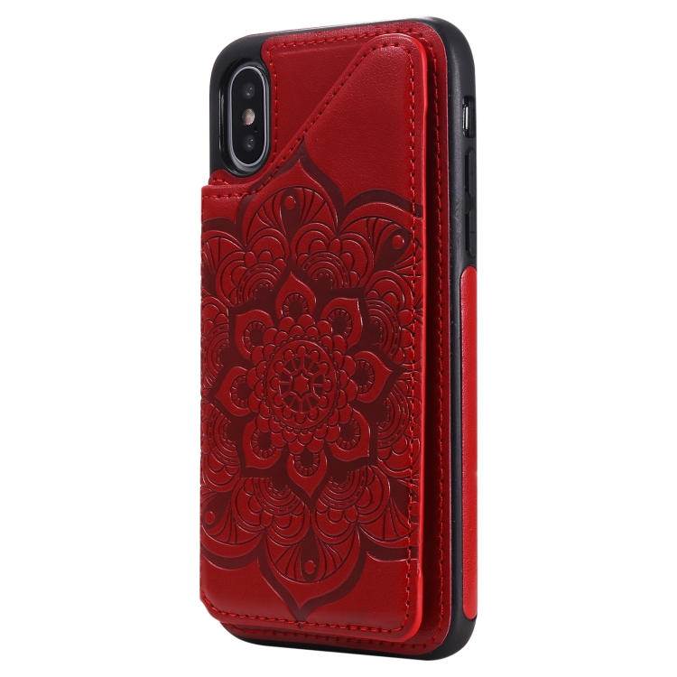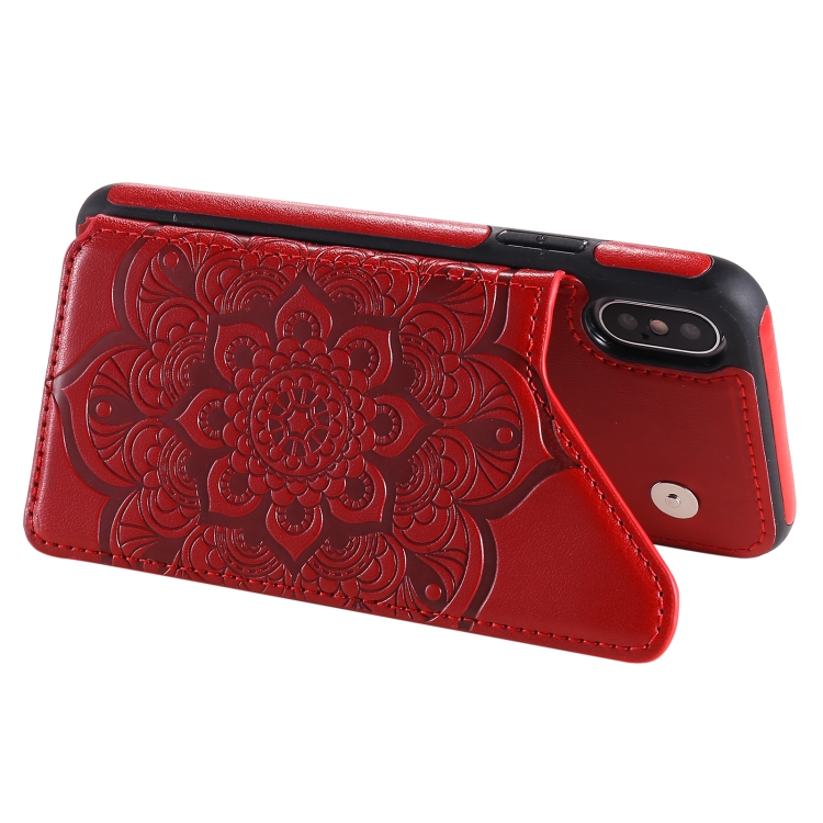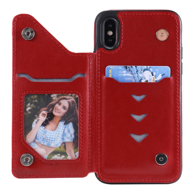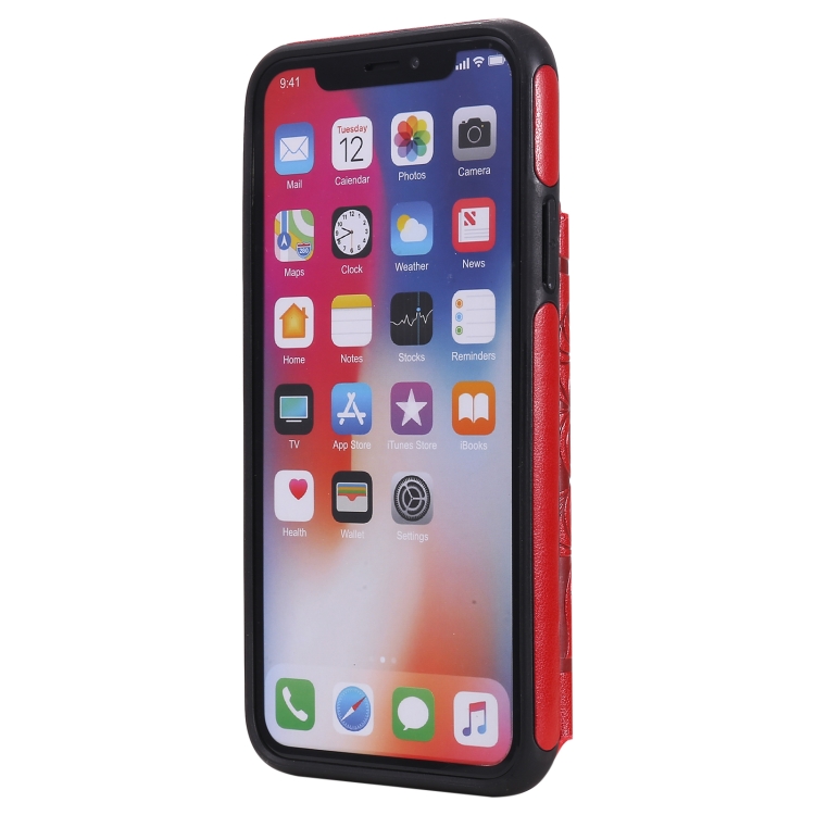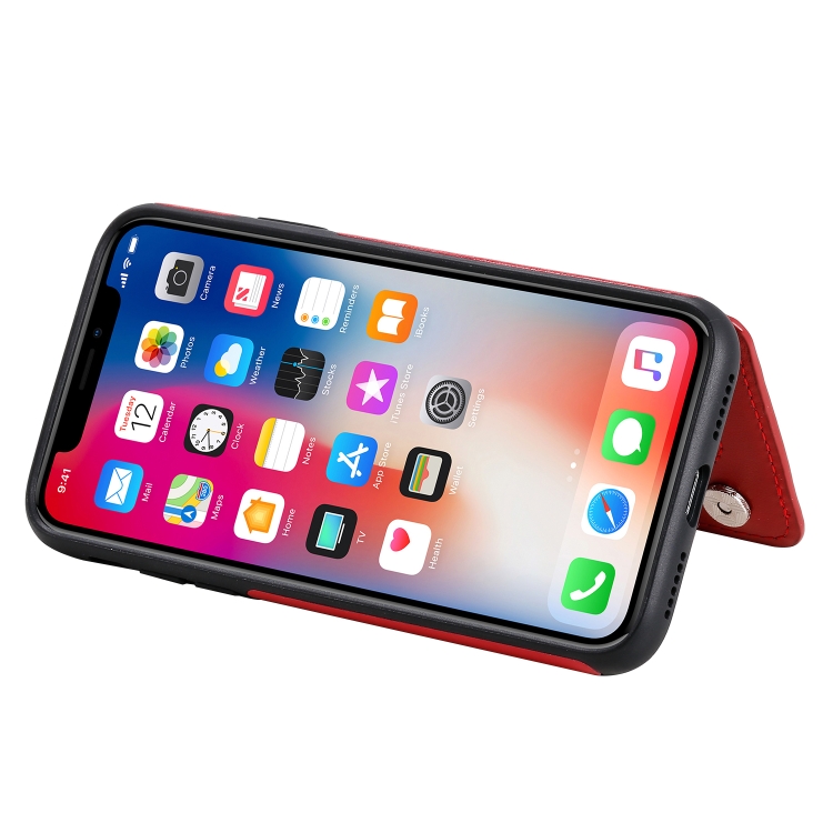 Funda Protectora para iPhone X / Xs con Soporte, Ranuras para Tarjetas y Marco de Fotos (Rojo)