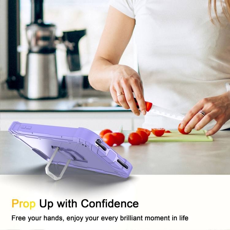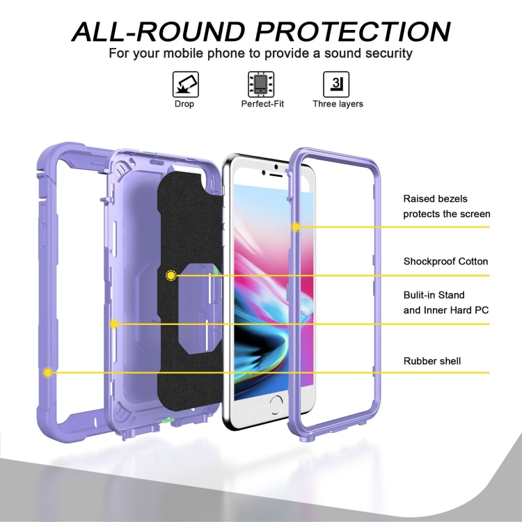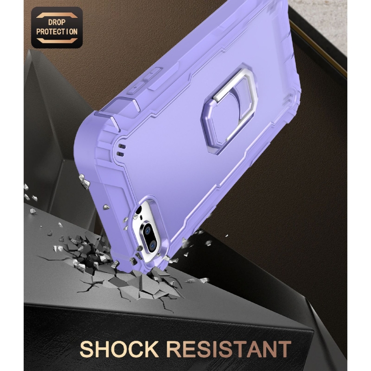 Funda Protectora iPhone 8 Plus 7 Plus 3 Capas Goma PC Soporte Giratorio (Púrpura)