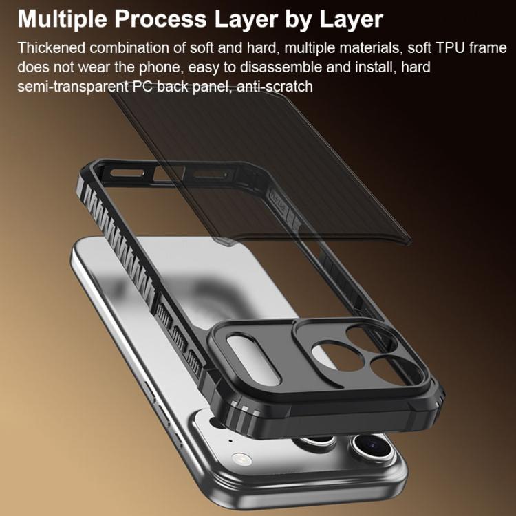 Funda protectora antigolpes War Shadow Stripe Series con airbag y acabado esmerilado para iPhone 17 Pro Max (Negro)