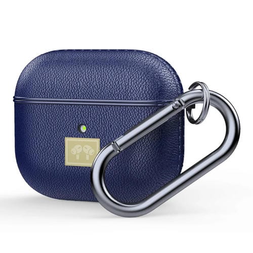 Funda Protectora Auriculares Airpods 3 Textura Cuero con Gancho (Azul Marino)