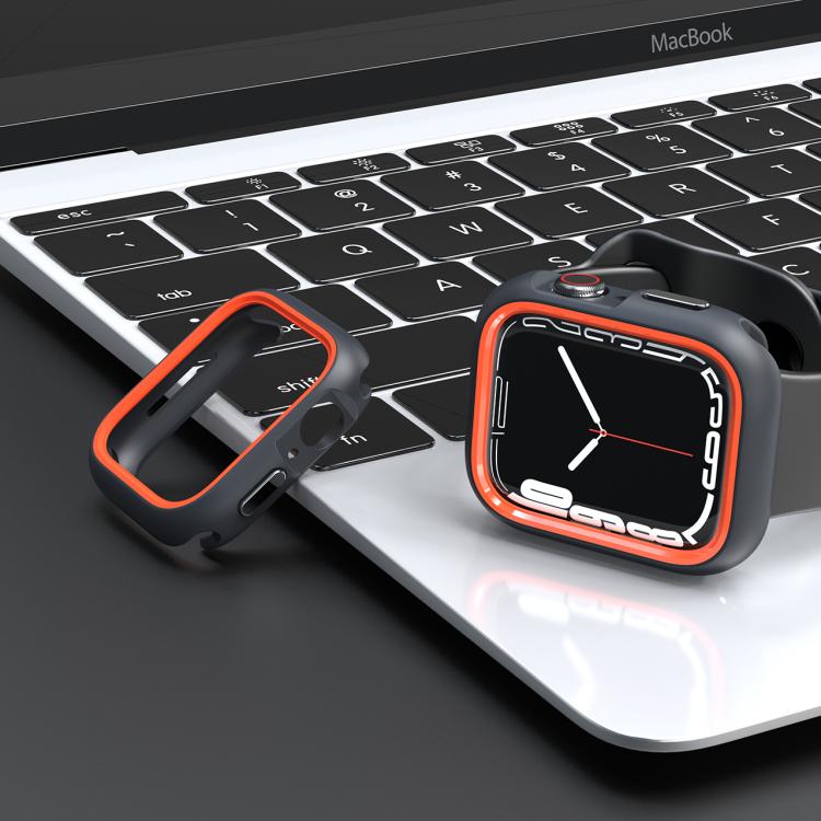 Funda protectora de PC bicolor con media envoltura para Apple Watch de 44 mm y 45 mm (naranja)