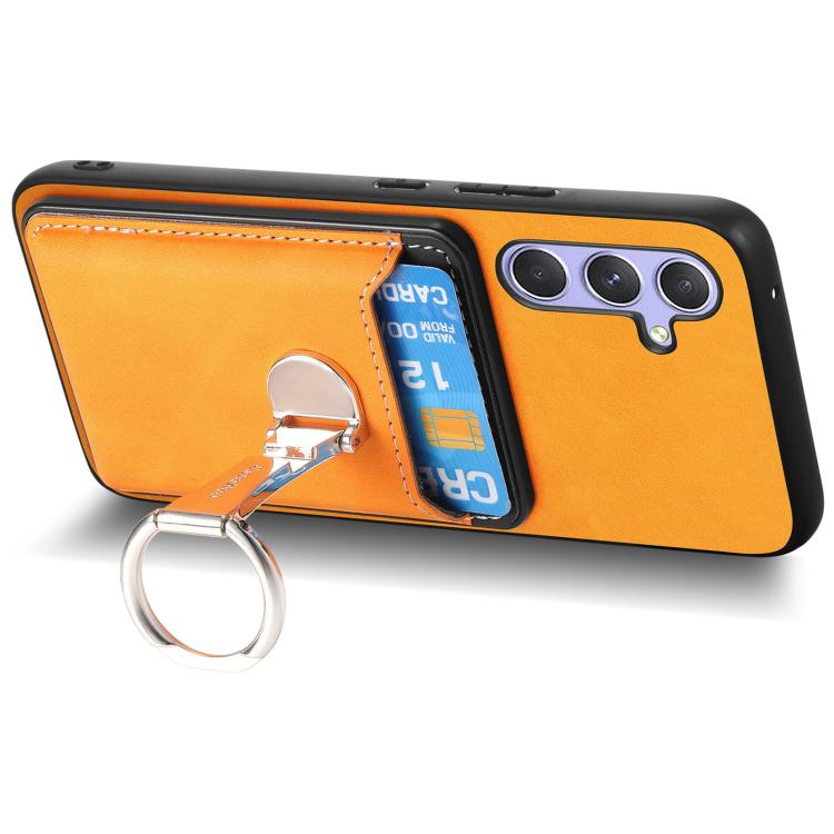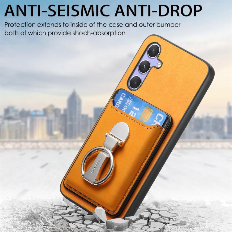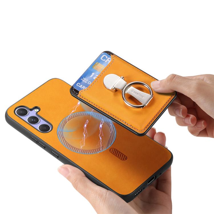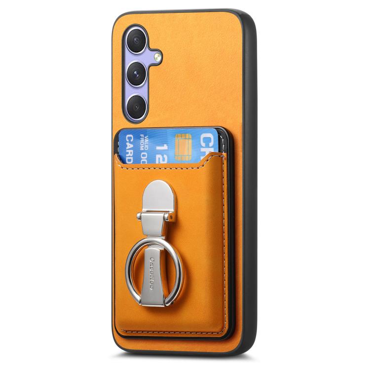 Funda retro plegable con anillo y tarjetero MagSafe para Samsung Galaxy A35 5G (amarilla)