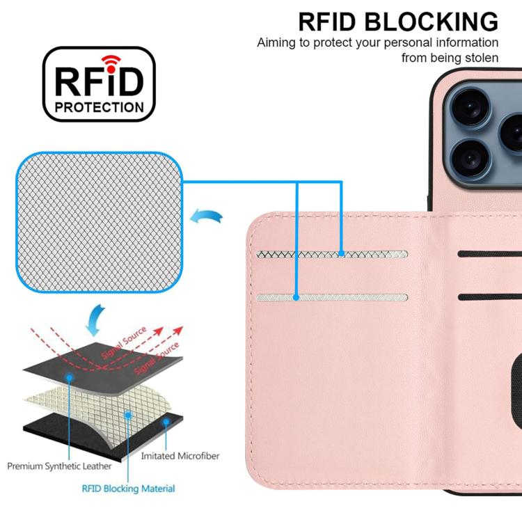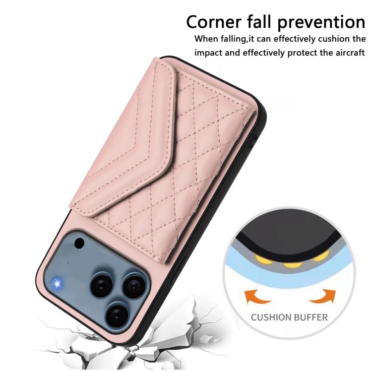 Funda RFID con textura rómbica para iPhone 17 Pro Max con cordón largo (oro rosa)