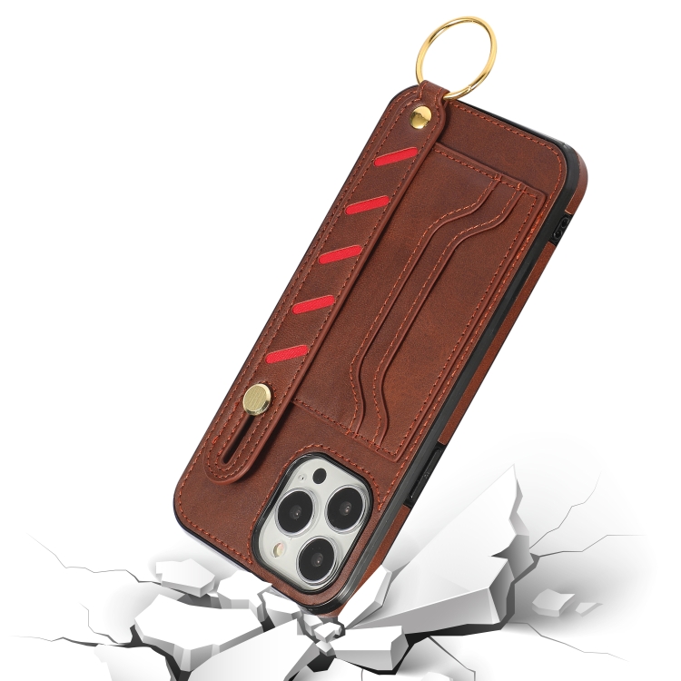 Funda Telefónica de Cuero Billetera de Pulsera para iPhone 13 Pro (Brown)