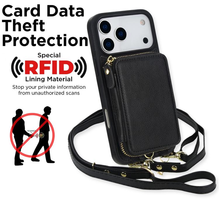 Funda tipo cartera bandolera con cremallera 2 en 1 AwQuer para iPhone 17 Pro (negra)