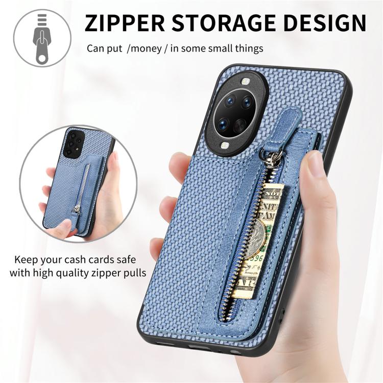 Funda tipo cartera con cremallera y tapa horizontal de fibra de carbono para Huawei Nova 14 Pro (negra)