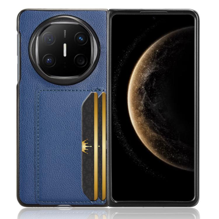 Funda Trasera Huawei Mate X6 con Ranuras para Tarjetas y Textura de Lichi (Azul)